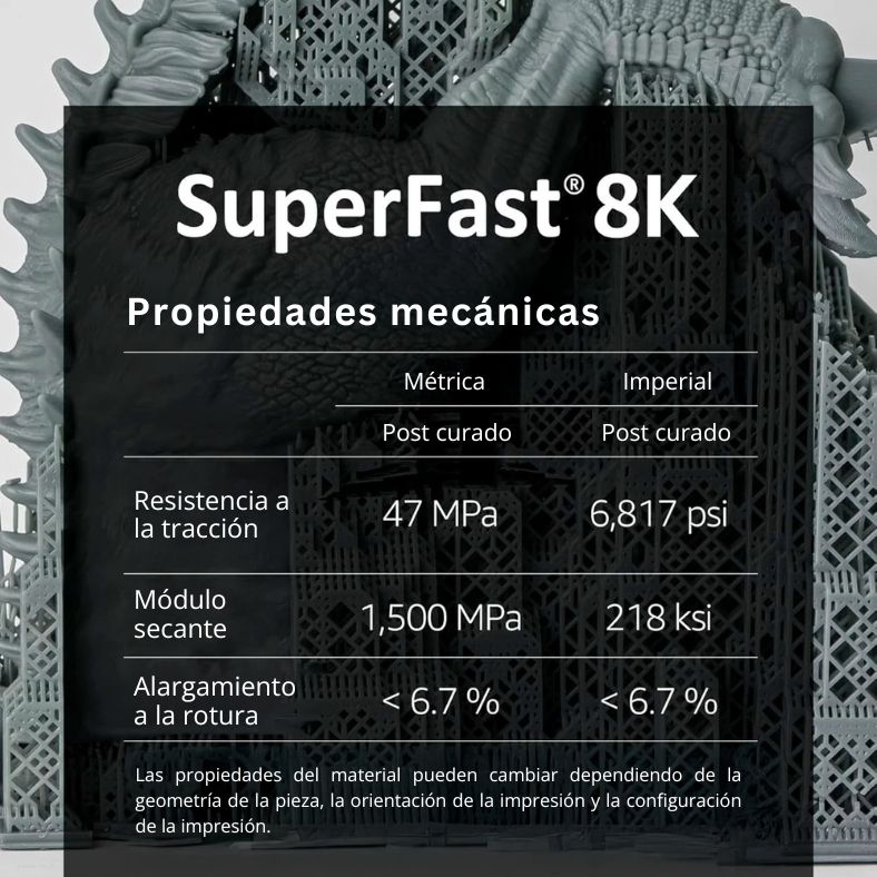 - Baja viscosidad para impresión 8K de precisión: El nuevo SuperFast está optimizado para sistemas LCD 4K y 8K.