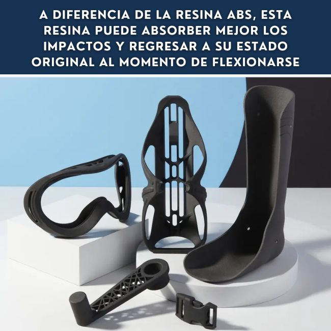 Gran Vesatilidad:Si imprimes piezas delgadas, de un maximo de 0.5 cm de grosor, la resina se comporta semi flexible, haciendola ideal para absorber impactos.