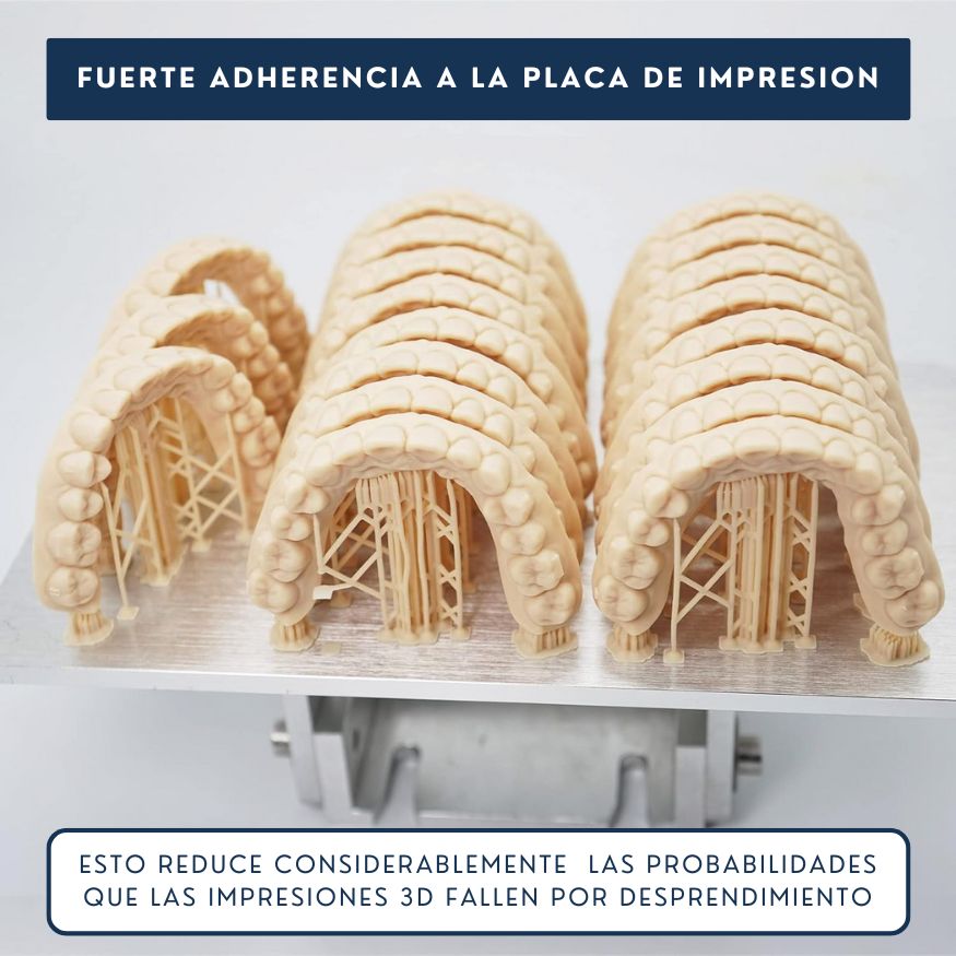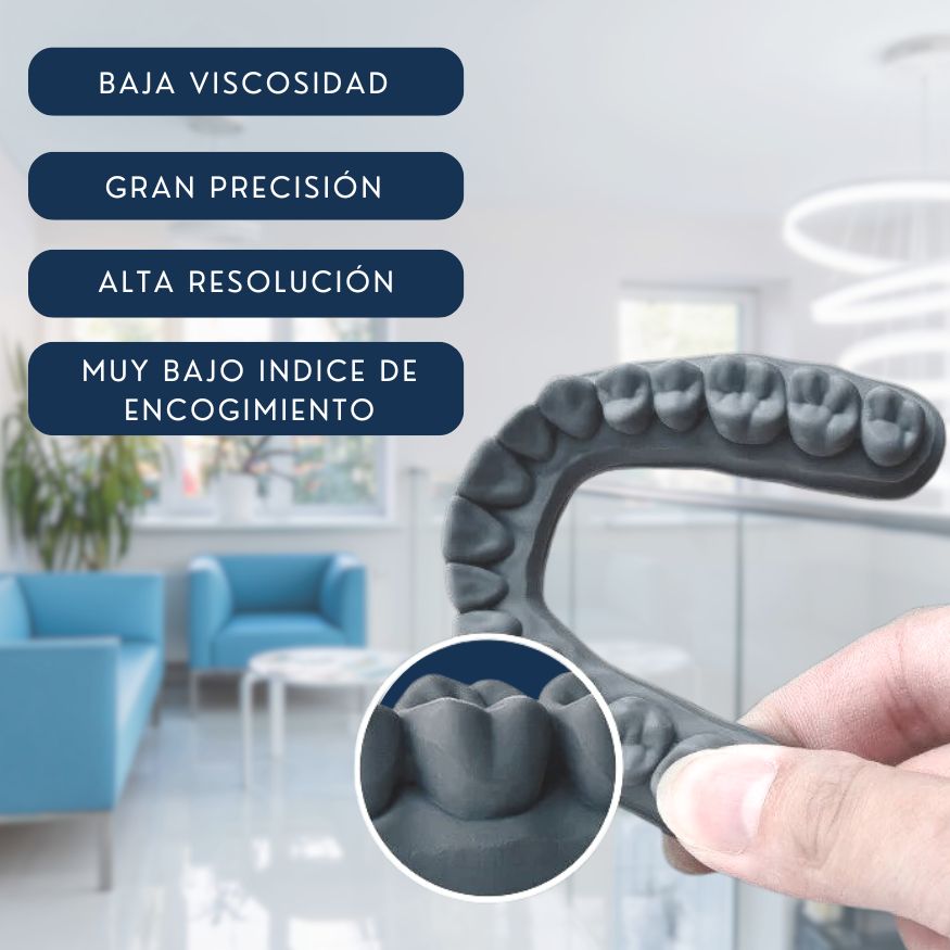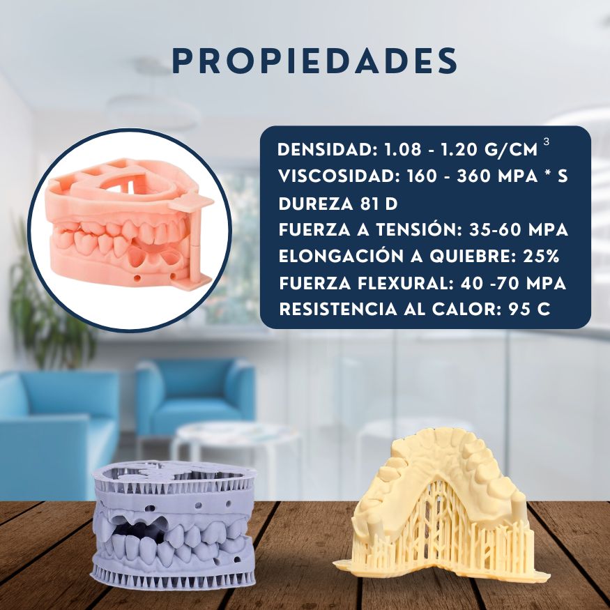 - Aunque no es una resina biocompatible para uso dentro del cuerpo humano, está diseñada para aplicaciones dentales externas como la fabricación de modelos para prótesis y ortodoncia.