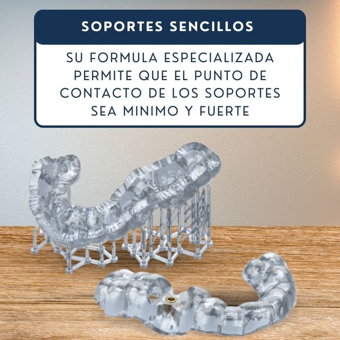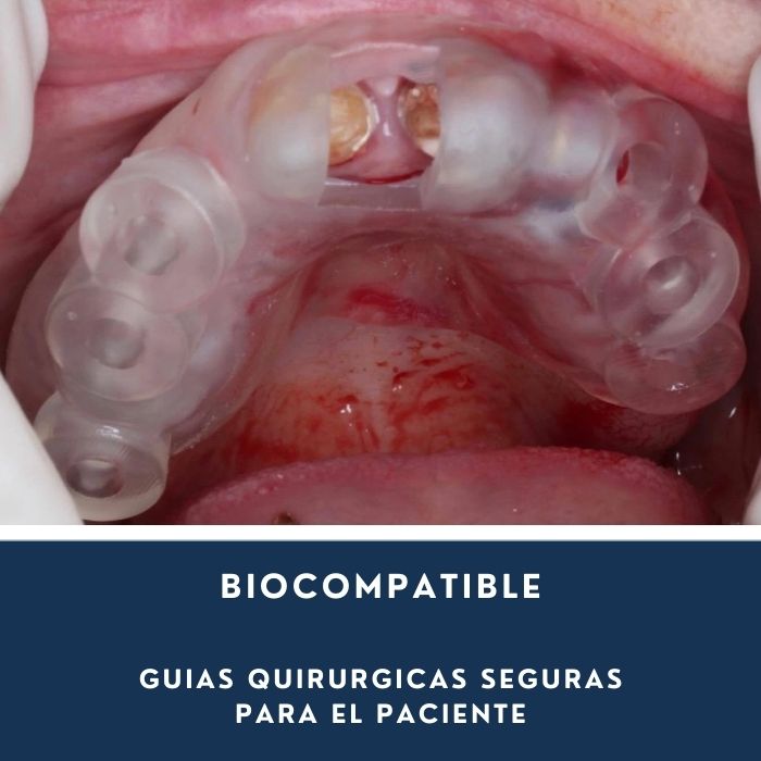 Precisión Quirúrgica Inigualable En la implantología, cada milímetro cuenta. Gracias a su bajísima tasa de contracción y alta estabilidad dimensional, las guías impresas encajan perfectamente en la boca del paciente. Esto asegura que la perforación se realice exactamente donde se planificó, reduciendo riesgos y tiempos en el quirófano.