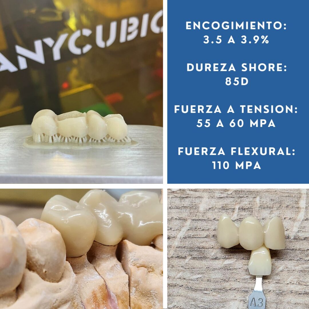 - Minimiza el desgaste de las piezas temporales, lo que prolonga la vida útil de las coronas y puentes impresos.