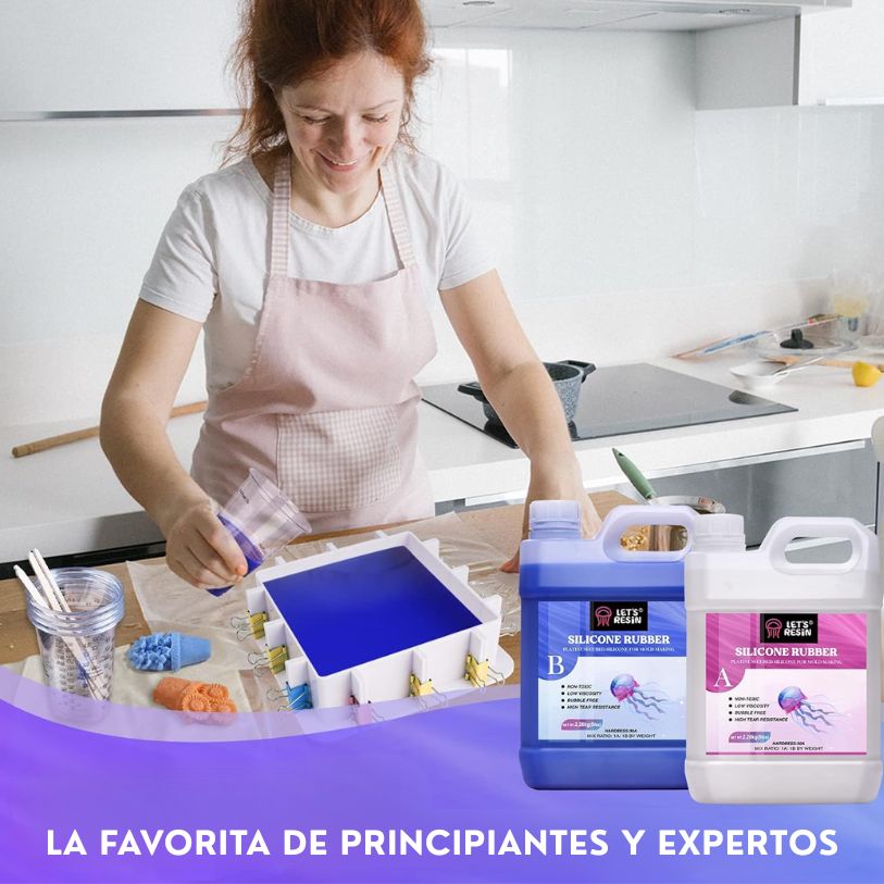 - Let’s Resin Caucho de Silicon 30A: Hecha con material de silicona seguro, no tóxico y sin olor, muy flexible, suave y transparente. También puedes mezclar caucho de silicona para moldes con polvo de mica para crear nuevos colores.