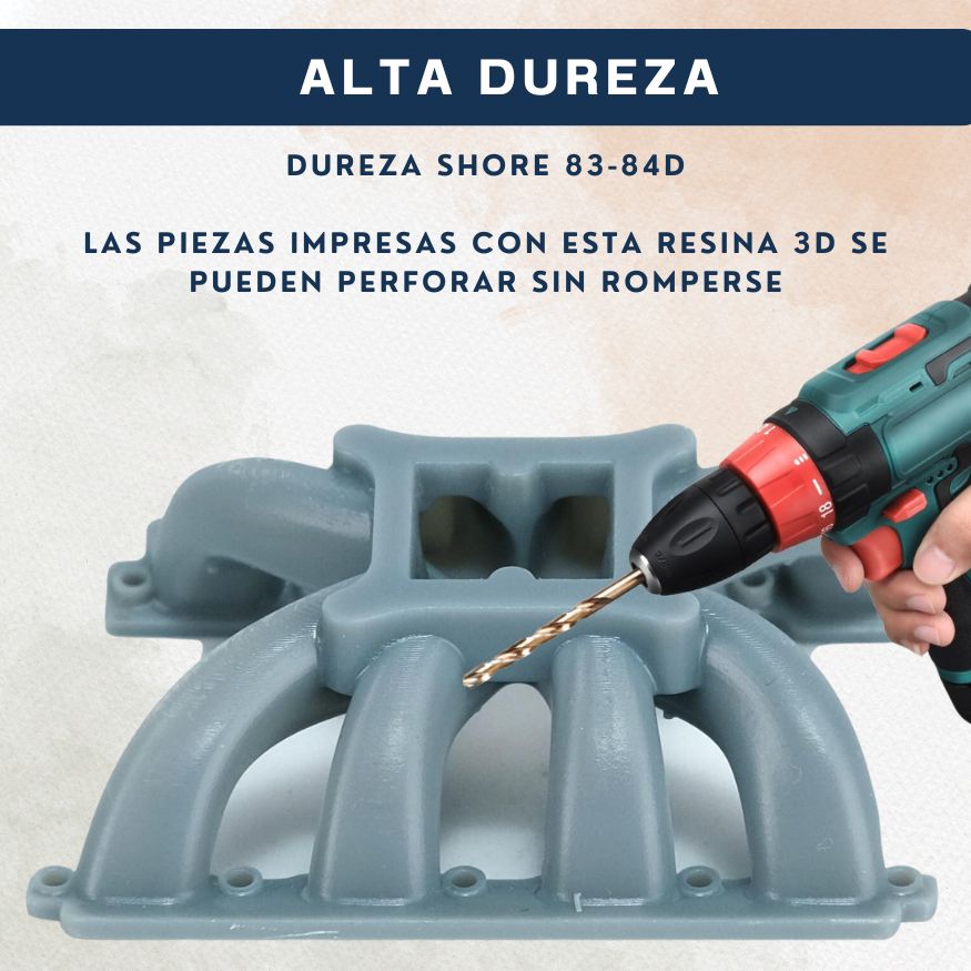 - Es más resistente, precisa y duradera en comparación con otras resinas, lo que resulta en impresiones más robustas y duraderas.