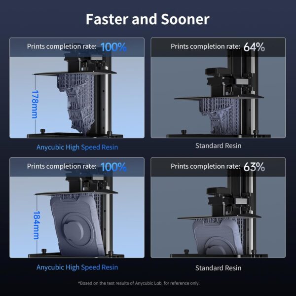 - Es una resina de alta velocidad utilizando material específico para resolver el problema del largo tiempo de impresión para el usuario. La resina de alta velocidad de Anycubic es especialmente adecuada para modelos de impresión grandes, con mayor velocidad y menor tiempo de impresión.